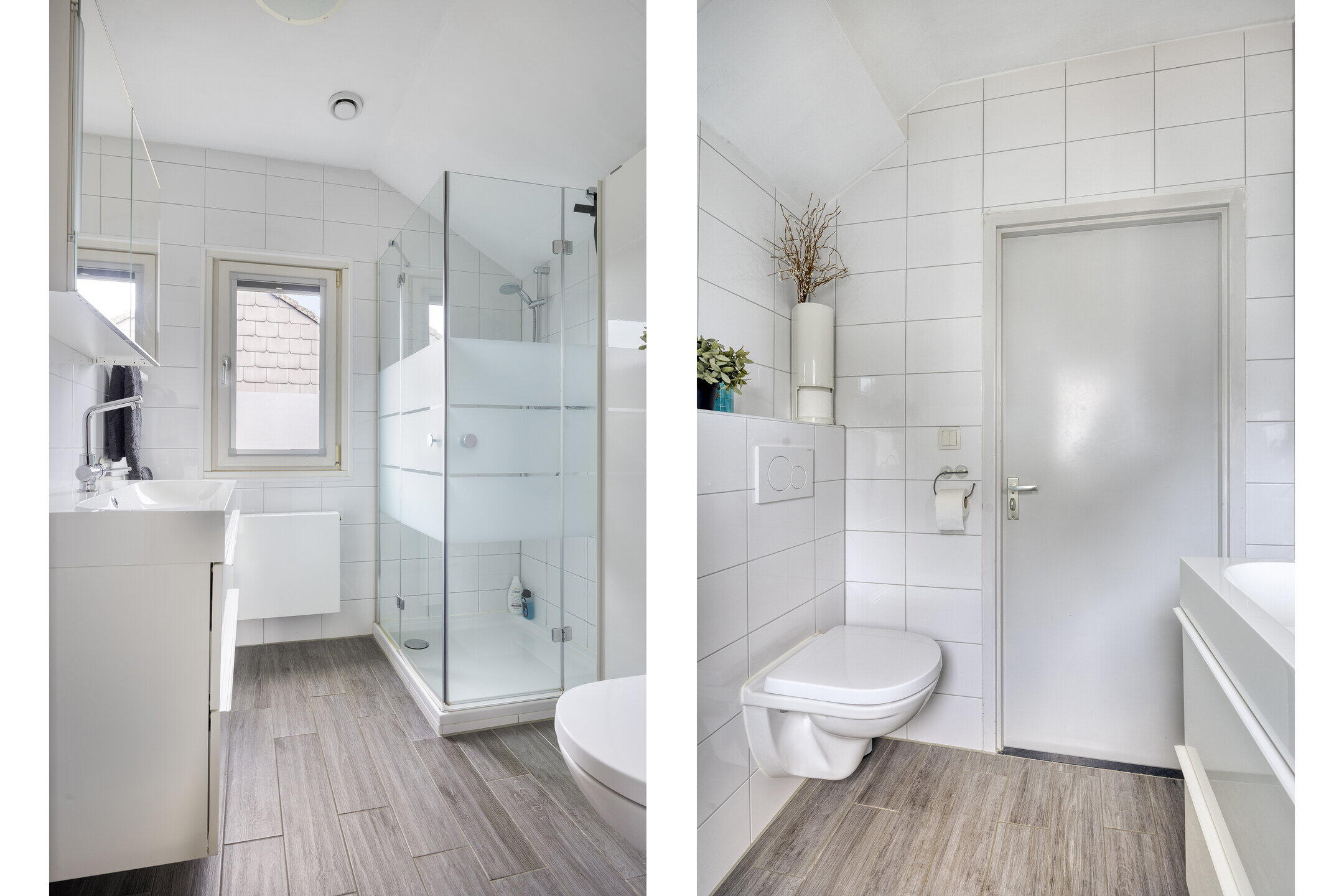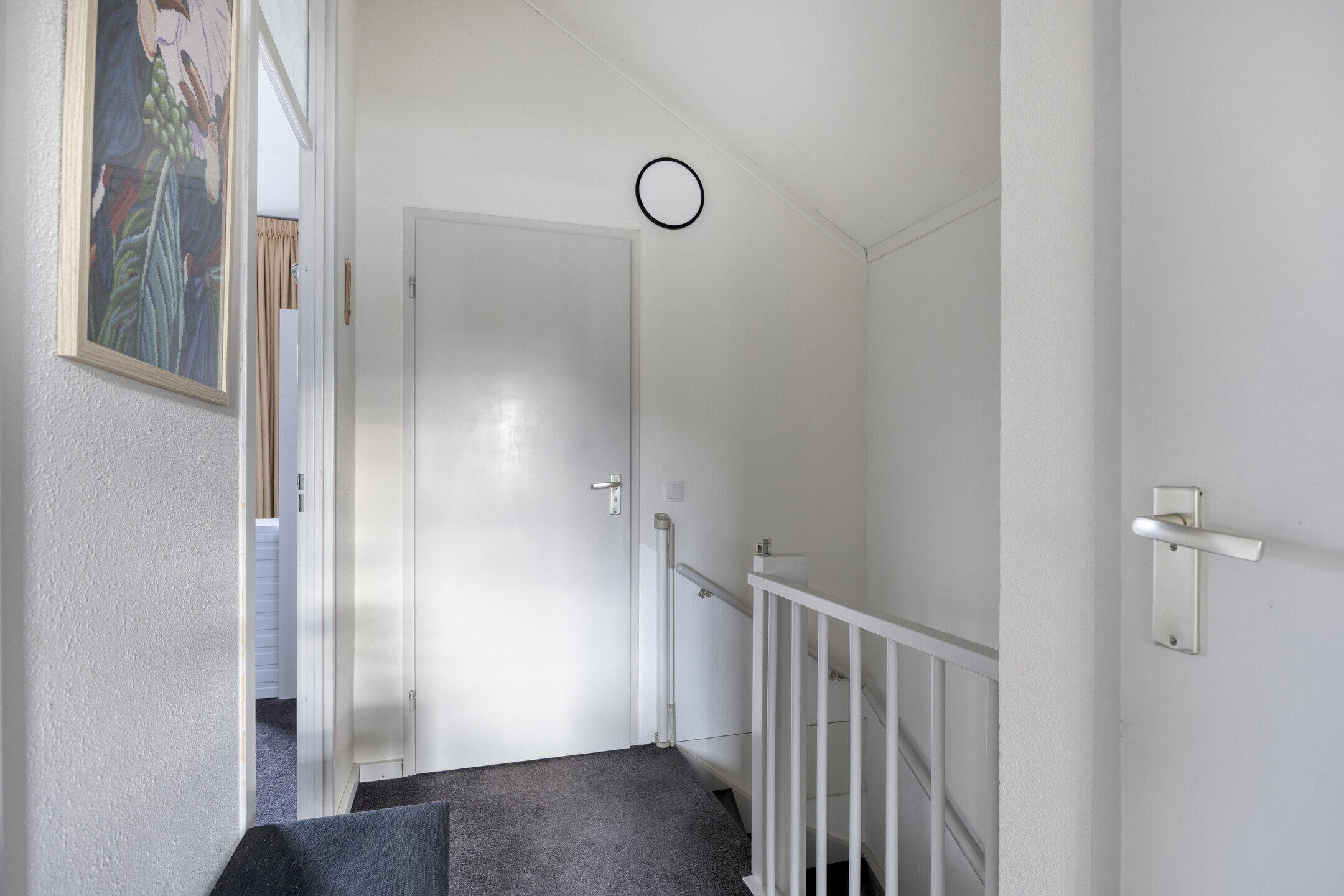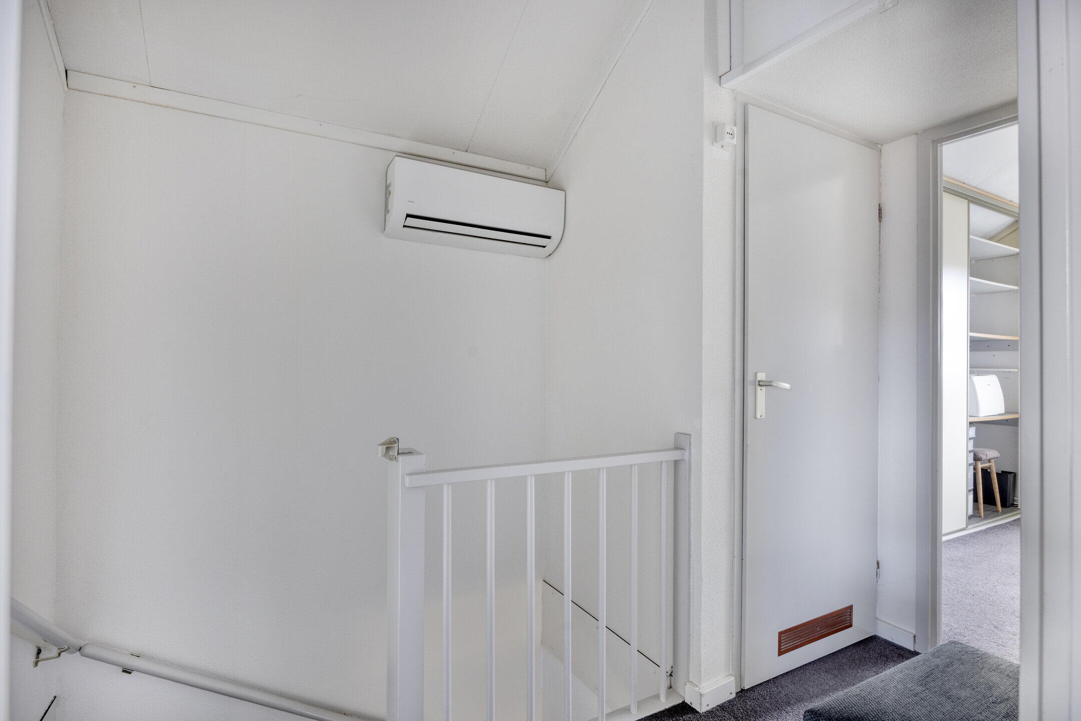 Op de verdieping bevinden zich drie slaapkamers (waarvan één nu als kastenkamer in gebruik) en de badkamer. De slaapkamers zijn afgewerkt met behang en vloerbedekking. Op de overloop is een airconditioning aanwezig (2018), wat zorgt voor een aangenaam binnenklimaat. De badkamer is in 2016 vernieuwd en uitgevoerd met wit sanitair en witte wandtegels. Daarnaast is de badkamer voorzien van natuurlijke ventilatie.