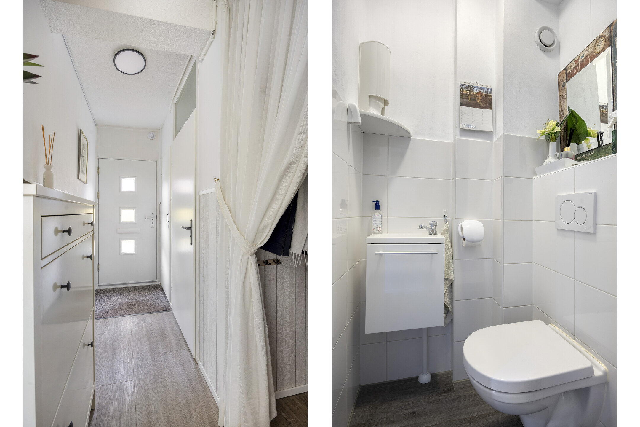 Via de entree komt u in de hal met toilet, meterkast en trapopgang. De woonkamer is tuingericht en voelt licht en ruim aan dankzij de gunstige hoekligging. Het plafond is strak gestuct en de wanden zijn afgewerkt met spachtelputz. In 2019 is er een PVC-vloer met vloerverwarming aangelegd (met uitzondering van het toilet), wat zorgt voor extra comfort.