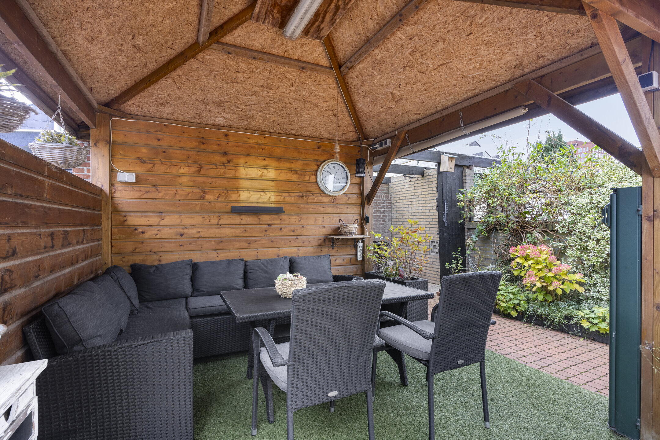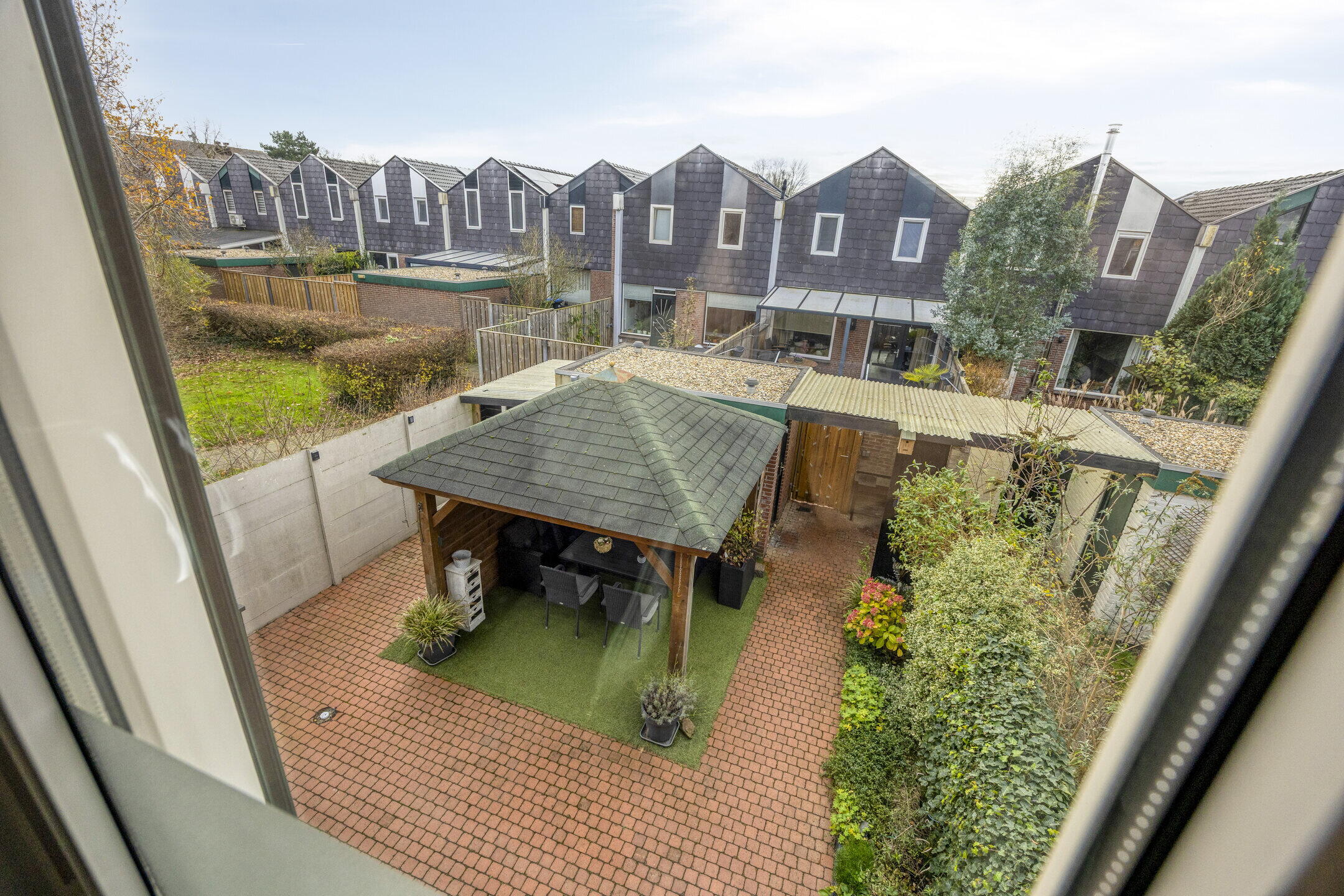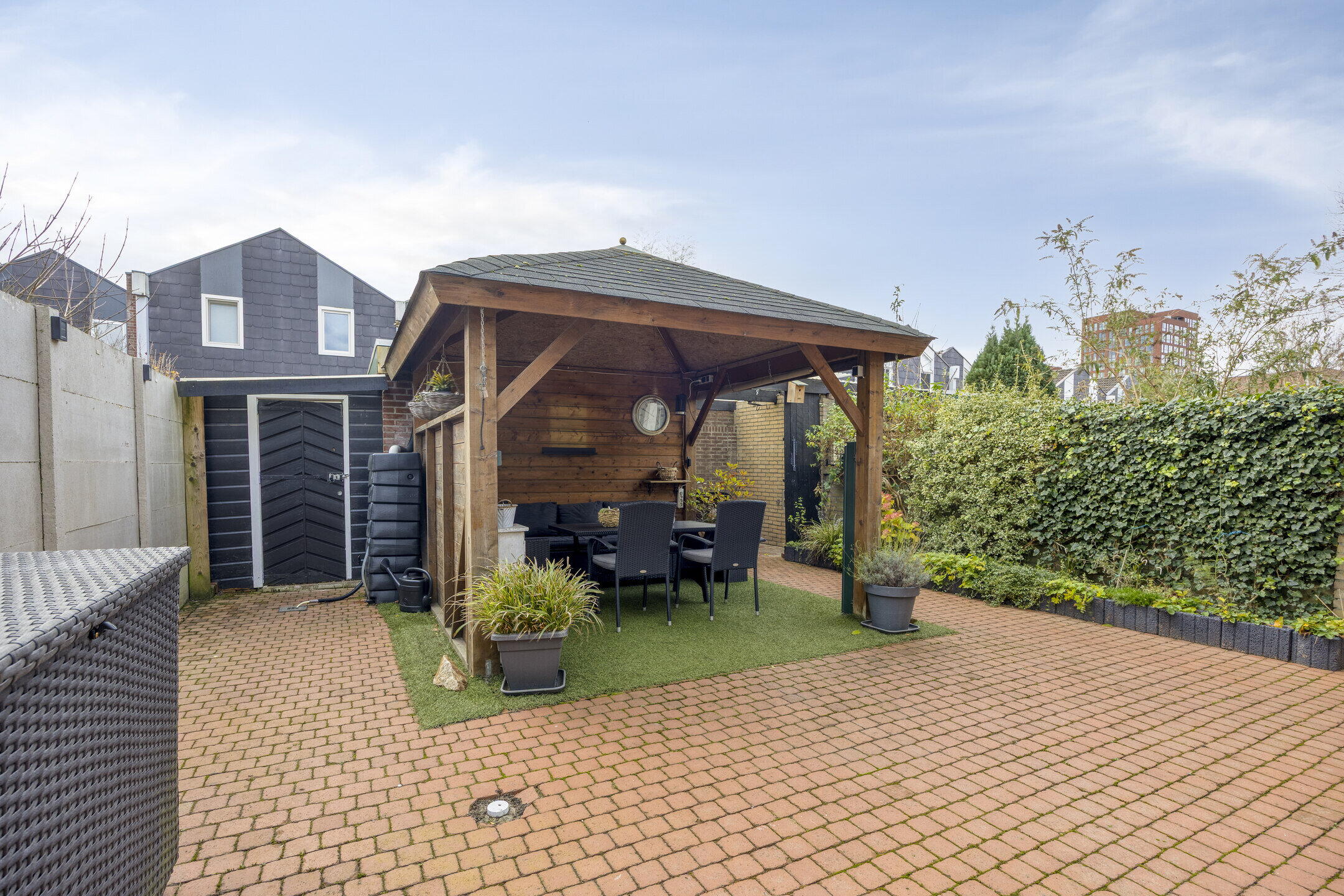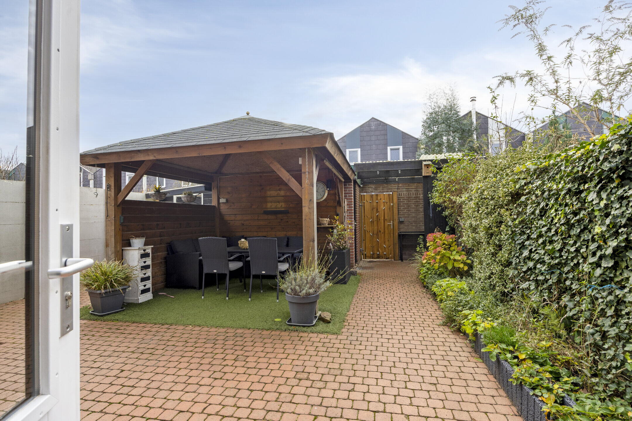 Vanuit de woonkamer stap je zo de zonnige, op het zuidwesten gelegen achtertuin in. De tuin beschikt over een sfeervol prieel waar je in de zomermaanden volop kunt ontspannen, een praktische achterom en een zij-ingang. Dankzij deze zij-ingang is de woning bovendien uitstekend bereikbaar met een bakfiets of motor. Aan de achterzijde van de woning zijn screens en een elektrisch zonnescherm geplaatst, terwijl aan de voorzijde een rolluik aanwezig is.