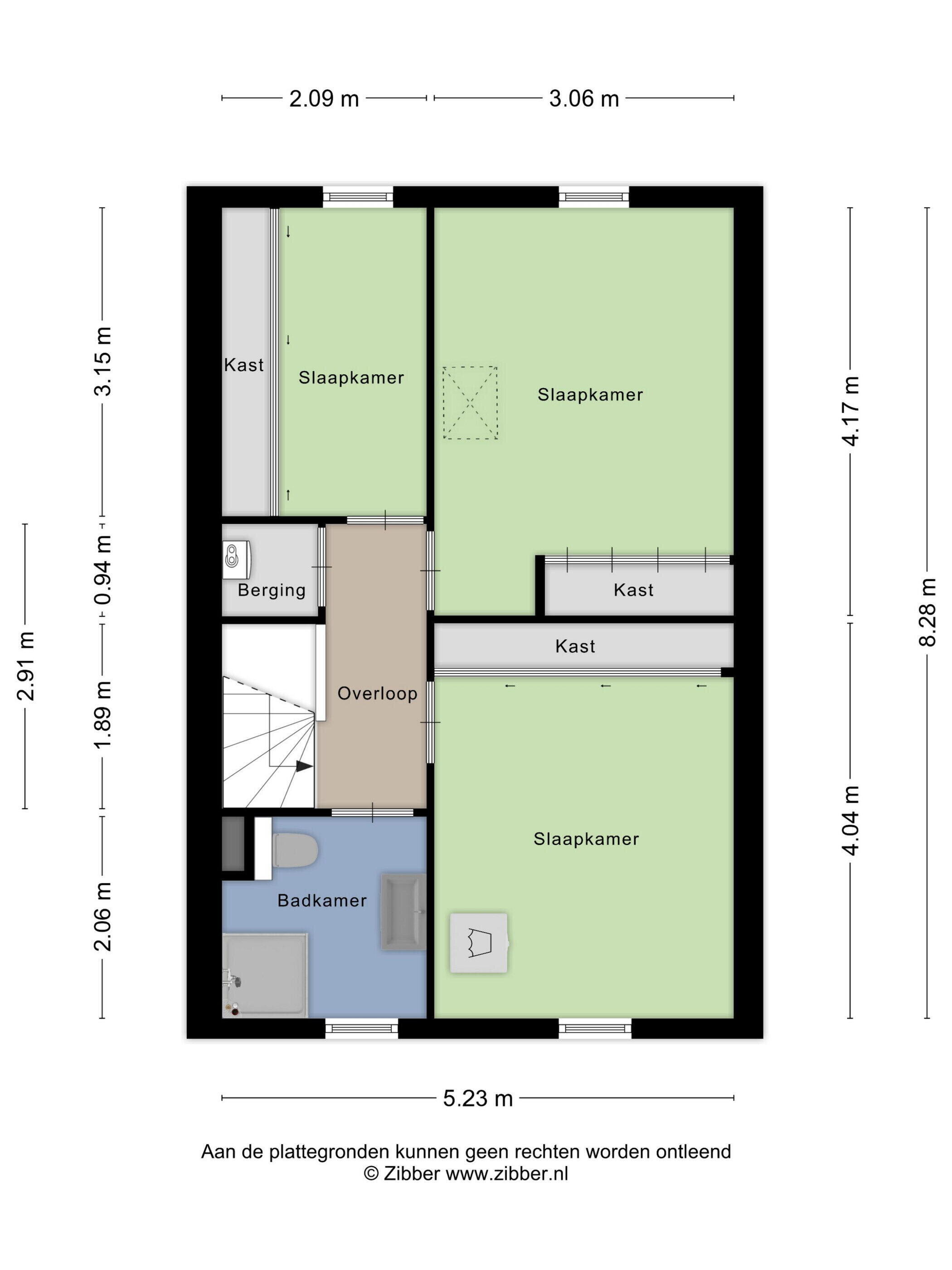 Via een losse trap is vanuit één van de slaapkamers de vliering bereikbaar. Deze ruimte is ideaal te gebruiken als extra bergruimte.